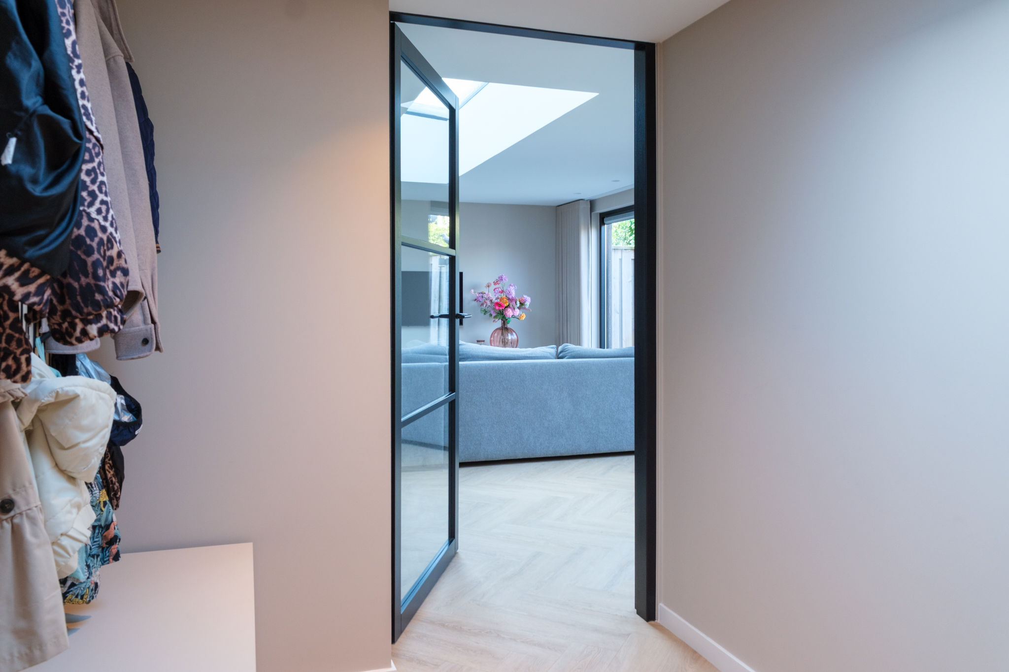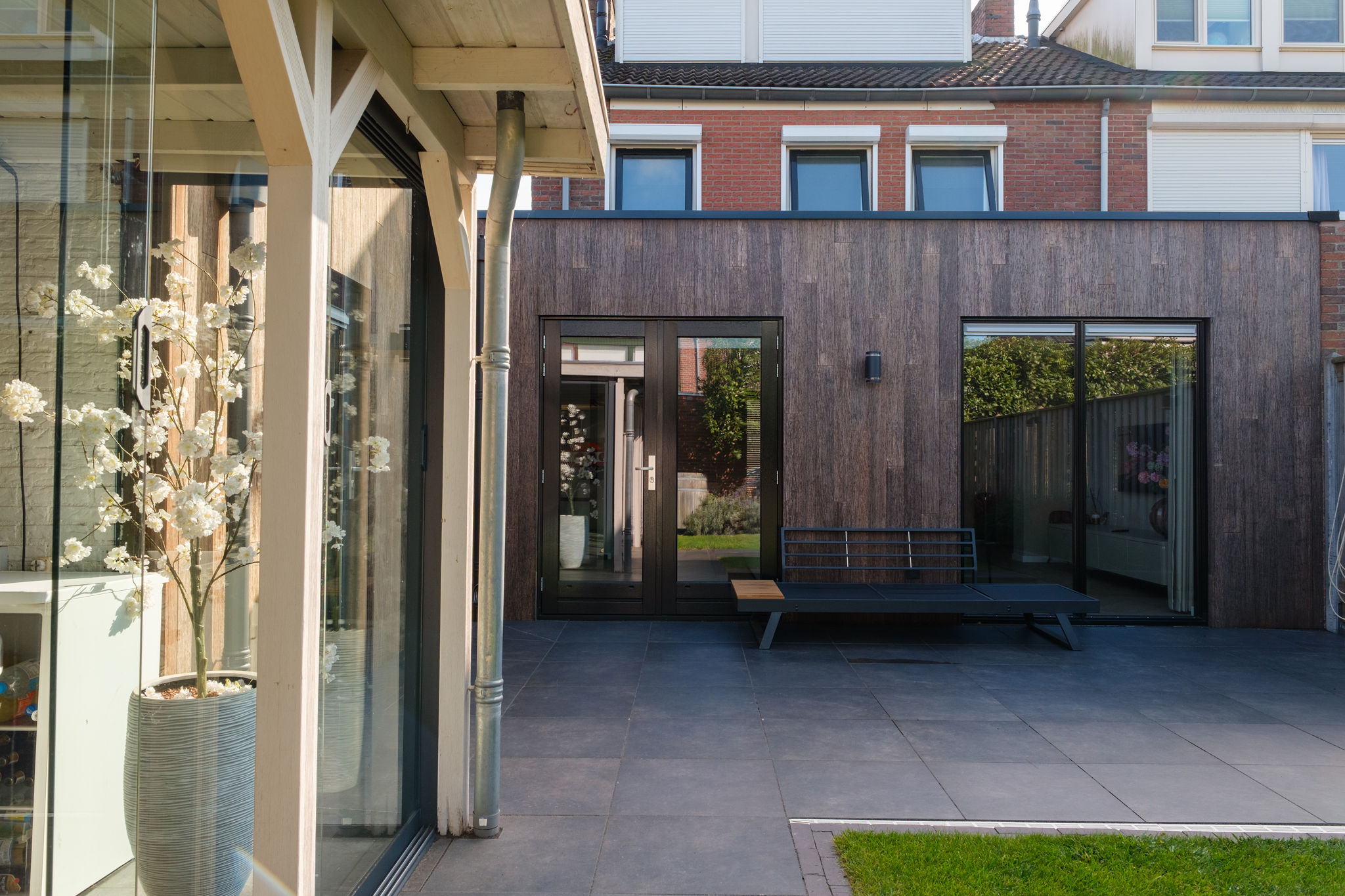 De bestaande aanbouw voldeed niet meer aan de eisen van deze tijd — zowel technisch als qua isolatie. Er is daarom besloten om deze volledig te verwijderen en opnieuw op te bouwen. De nieuwe aanbouw is strak aangesloten op de bestaande bijkeuken door één doorlopende daklijn toe te passen. Dat zorgt voor samenhang in het ontwerp en een rustig straatbeeld.