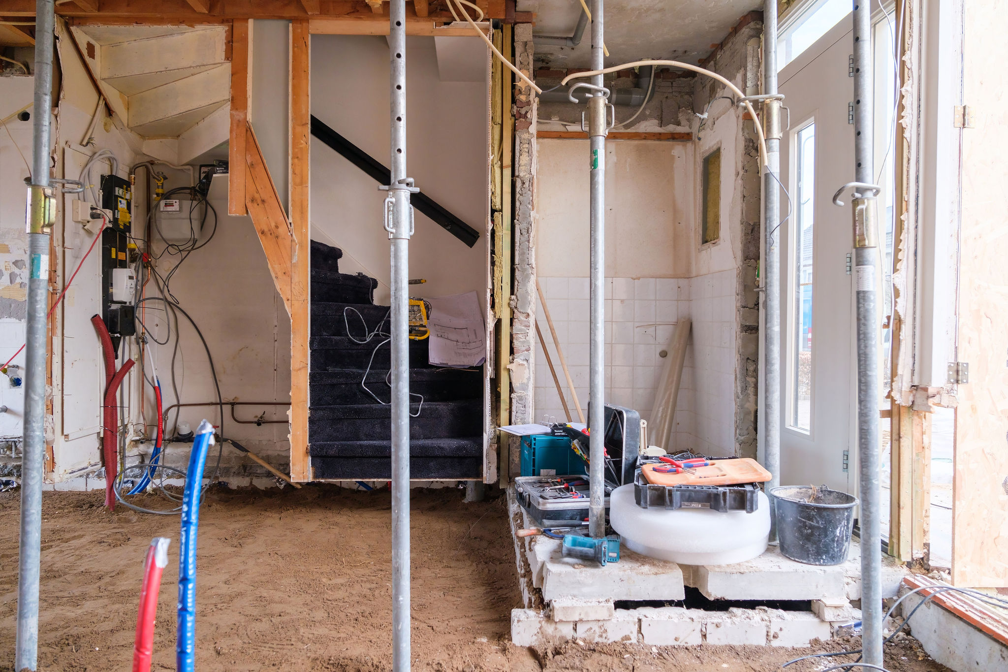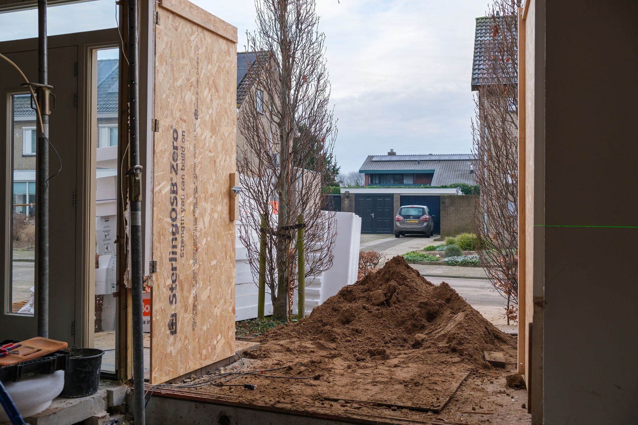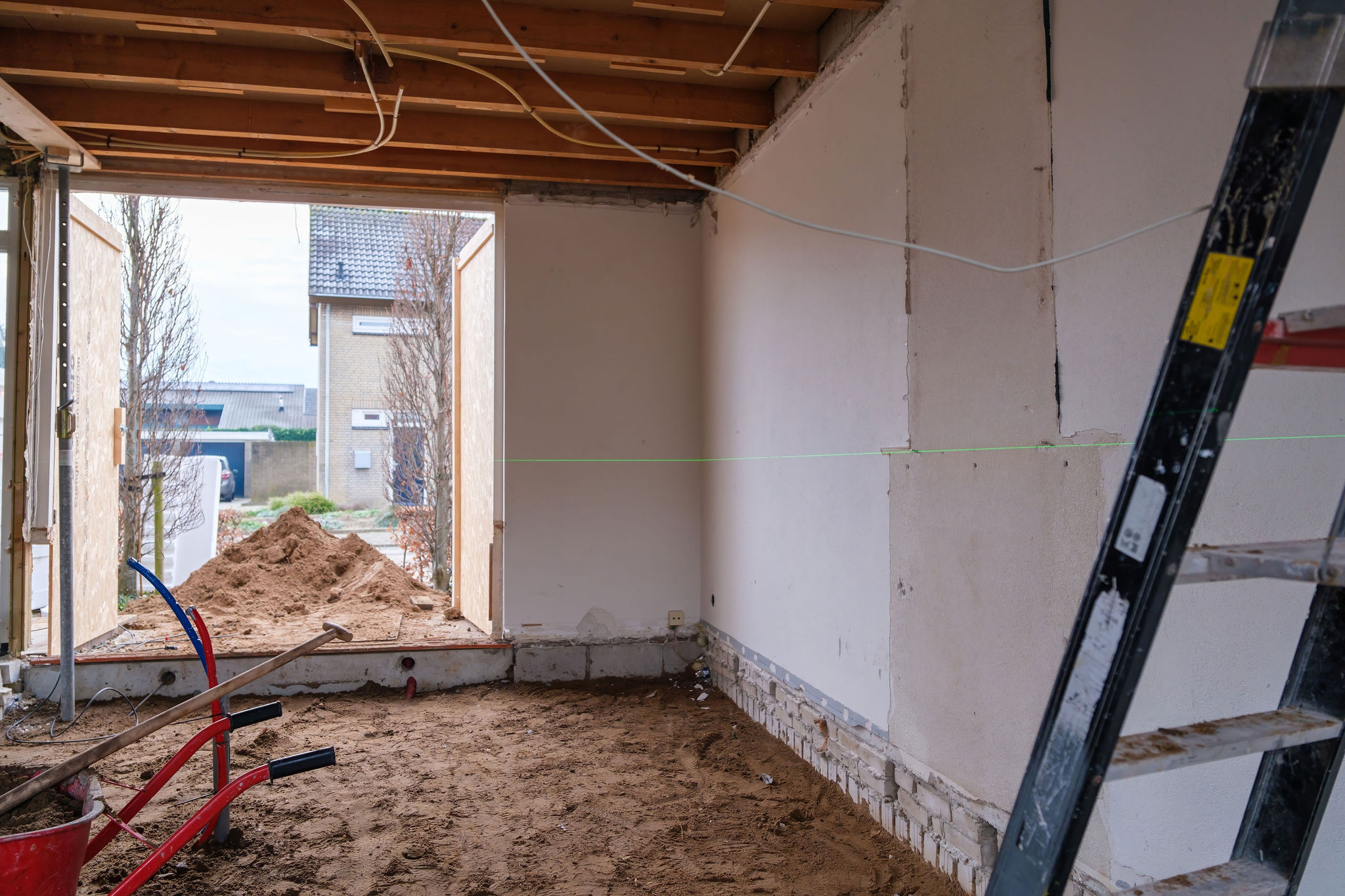 De woning was alleen bereikbaar via de voorzijde, waar een oud kozijn zat. Door dit direct te verwijderen, ontstond er ruimte voor een efficiënte aanvoer van materialen en transport op de bouwplaats. Tijdens de inspectie bleek bovendien dat de bovenliggende muren onvoldoende constructief waren opgevangen: er ontbraken dragende stalen balken. Dat is direct hersteld, net als de achtergevel, waarmee de basis van de woning weer veilig en stabiel is gemaakt.